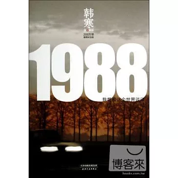 本書以一部旅行車為載體,通過在路上的見聞、過去的回憶、撲朔迷離的人物關系等各種現實場景,表達了韓寒對這個世界與當下現實的看法。故事由兩條線索並列推進,線索一是着手於現實的旅程,主人公「我」開着一輛1988年生產的汽車,在前往遠方接朋友的途中,與妓女娜娜相遇后一路相伴,由此碰撞出一連串的火花;另一條線索以回憶的形式穿插其中博客來,在這趟旅途中,「我」不斷地回顧自己的童年,思考着曾經的過往和當下的人生之路。這場真正的旅途在精神層面,如果說似乎逾越了部分法律和道德的界限,但出發點也僅僅是希望在另一側找到信仰。韓寒是「叛逆的」,他「試圖用能給世界一些新意的眼光來看世界。試圖尋找令人信服的價值」。他認為這一切通過文學都可以實現,產生了要創造一種批判現有一切社會習俗的「新幻象」的念頭——《1988》就此問世。