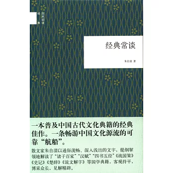 內容簡介: 博客來書店 為幫助一般讀者了解古代典籍,朱自清先生盡量采用近人新說,用淺明而切實的文字,於十三篇文章中,要言不煩地介紹了我國文化遺產中的經典作品。這本書寫於1942年,六十多年來廣為流傳,成為了普及中國傳統文化的啟蒙經典。